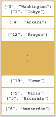 Let's create a Hazelcast instance and fill a map named Capitals with key-value pairs using the following code. Use the HazelcastInstance getMap method to get the map, then use the map put method to put an entry into the map.